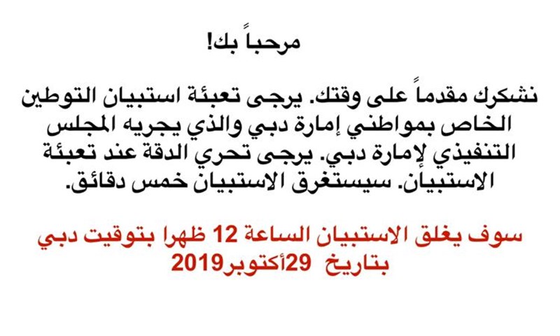 أطلقت الأمانة العامة للمجلس التنفيذي لإمارة دبي استبياناً لحصر بيانات مواطني إمارة دبي الباحثين عن عمل، وتوجيههم إلى الفرص التي تناسب مؤهلاتهم ورغباتهم الوظيفية، في خطوة أولى لتنفيذ خطة عمل إمارة دبي بشأن ملف التوطين والتي اعتمدها سمو الشيخ حمدان بن محمد بن راشد آل مكتوم ولي عهد دبي رئيس المجلس التنفيذي نهاية شهر سبتمبر الماضي، إعمالاً بتوجيهات صاحب السمو الشيخ محمد بن راشد آل مكتوم، نائب رئيس الدولة رئيس مجلس الوزراء حاكم دبي "رعاه الله" التي أطلقها في رسالة الموسم الجديد.